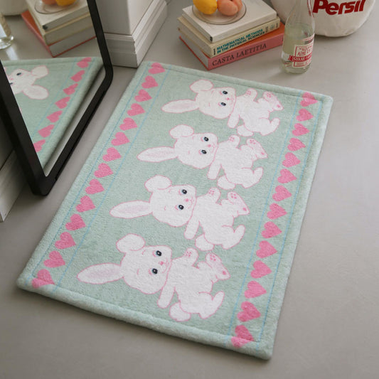 The Frigg 心型粉紅兔子圖案 超細纖維 地墊 門口墊 50x70cm