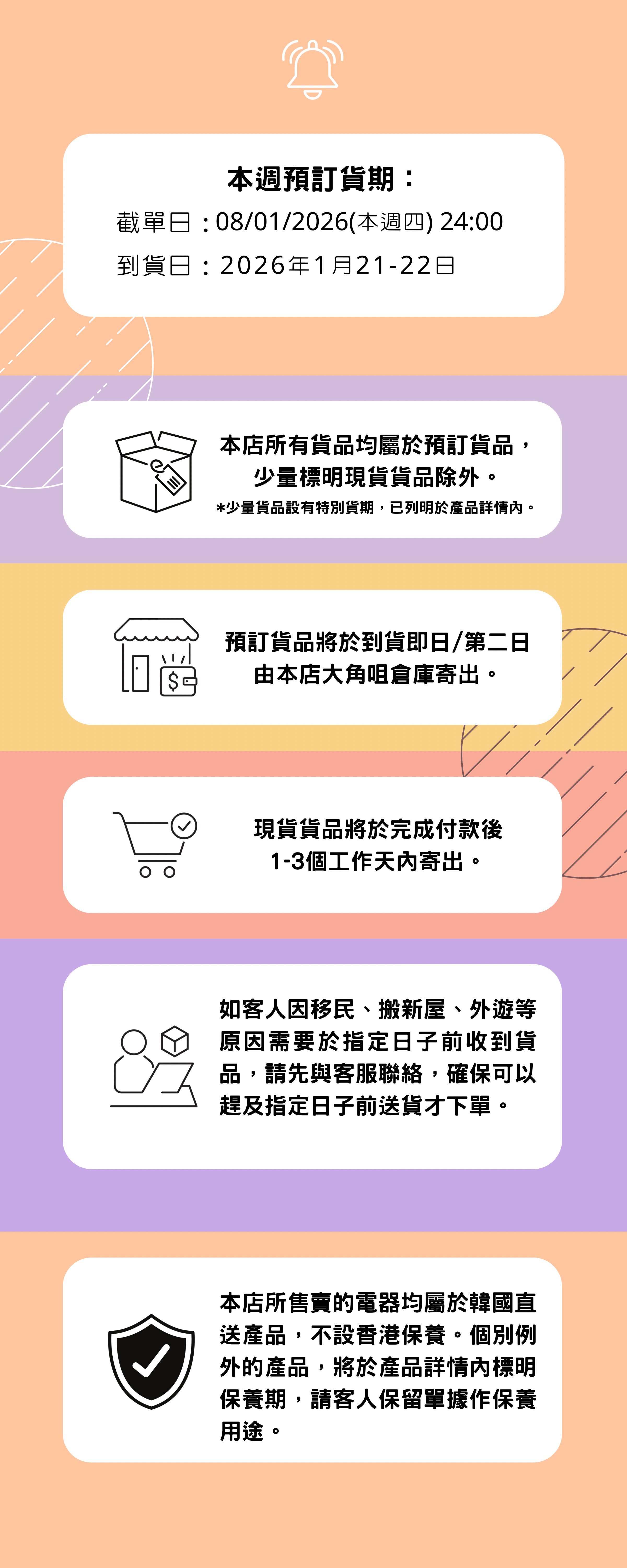本店貨品屬預訂貨品,最新截單日:本週四 1月8日 晚上12點
