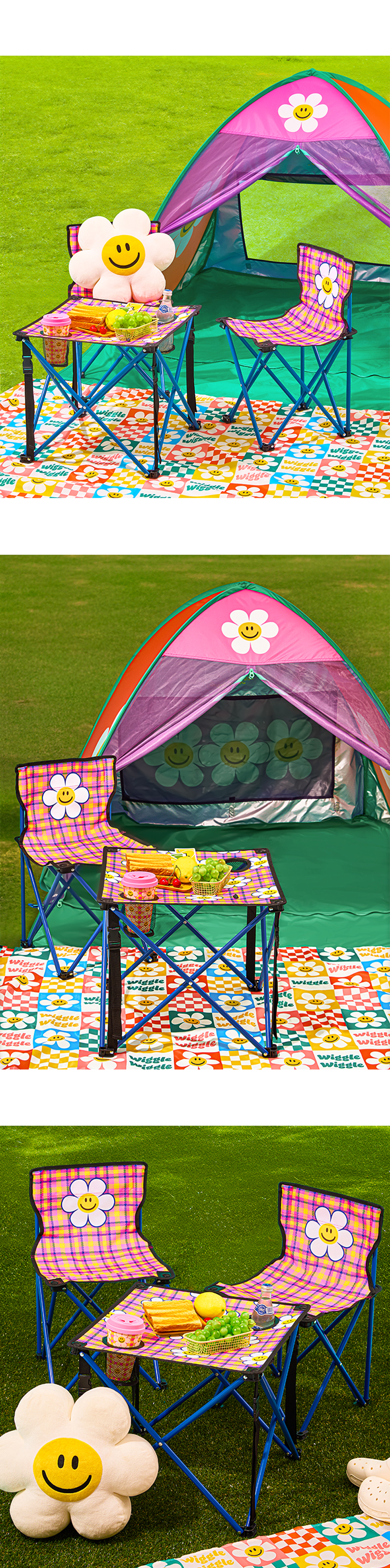 - 獨特Wiggle Wiggle感官設計,結合明亮格紋與可愛花朵圖案,增添戶外野餐氣氛。