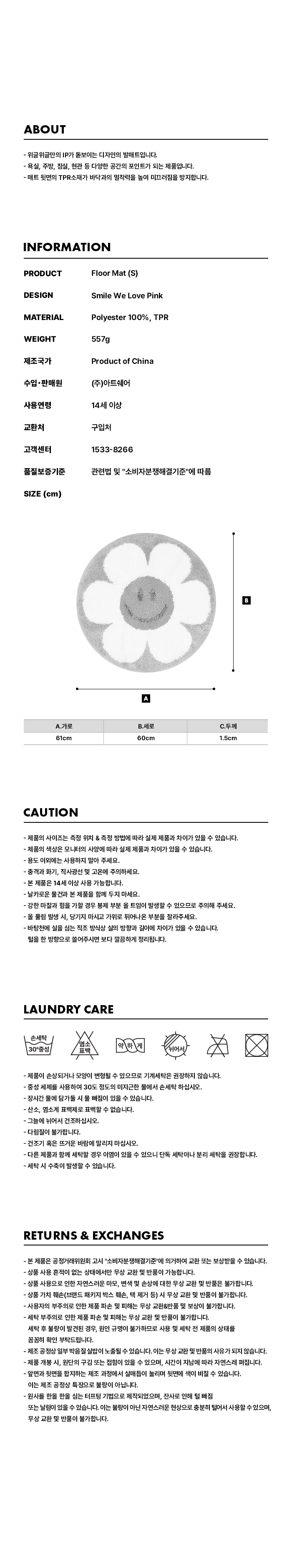 \n - 尺寸:直徑61cm,厚度約1.5cm