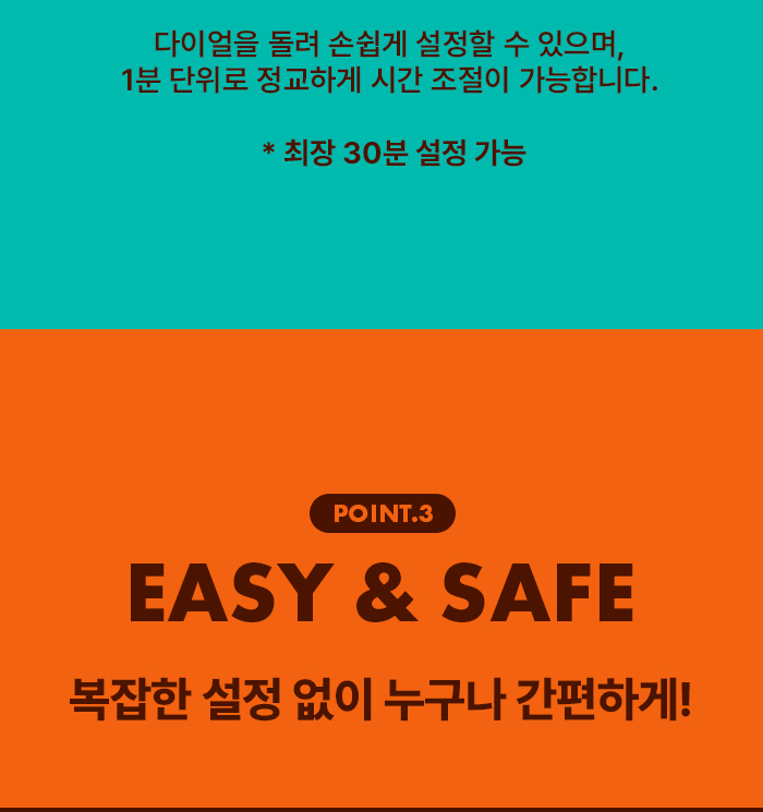 - 簡易的時間設置,最多可設定30分鐘,使用方便。